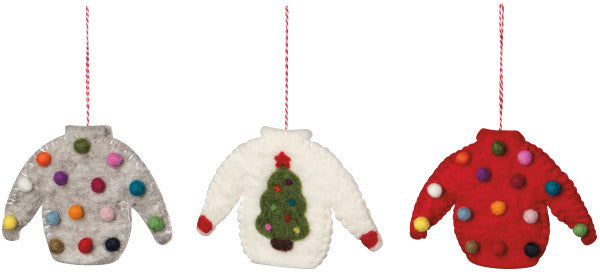 Wee, whimsical, felted wool Christmas sweater ornaments bring on warm and fuzzy festive feels. Each one of these artisan-crafted treasures tells a story of craftsmanship and empowerment from Nepal.