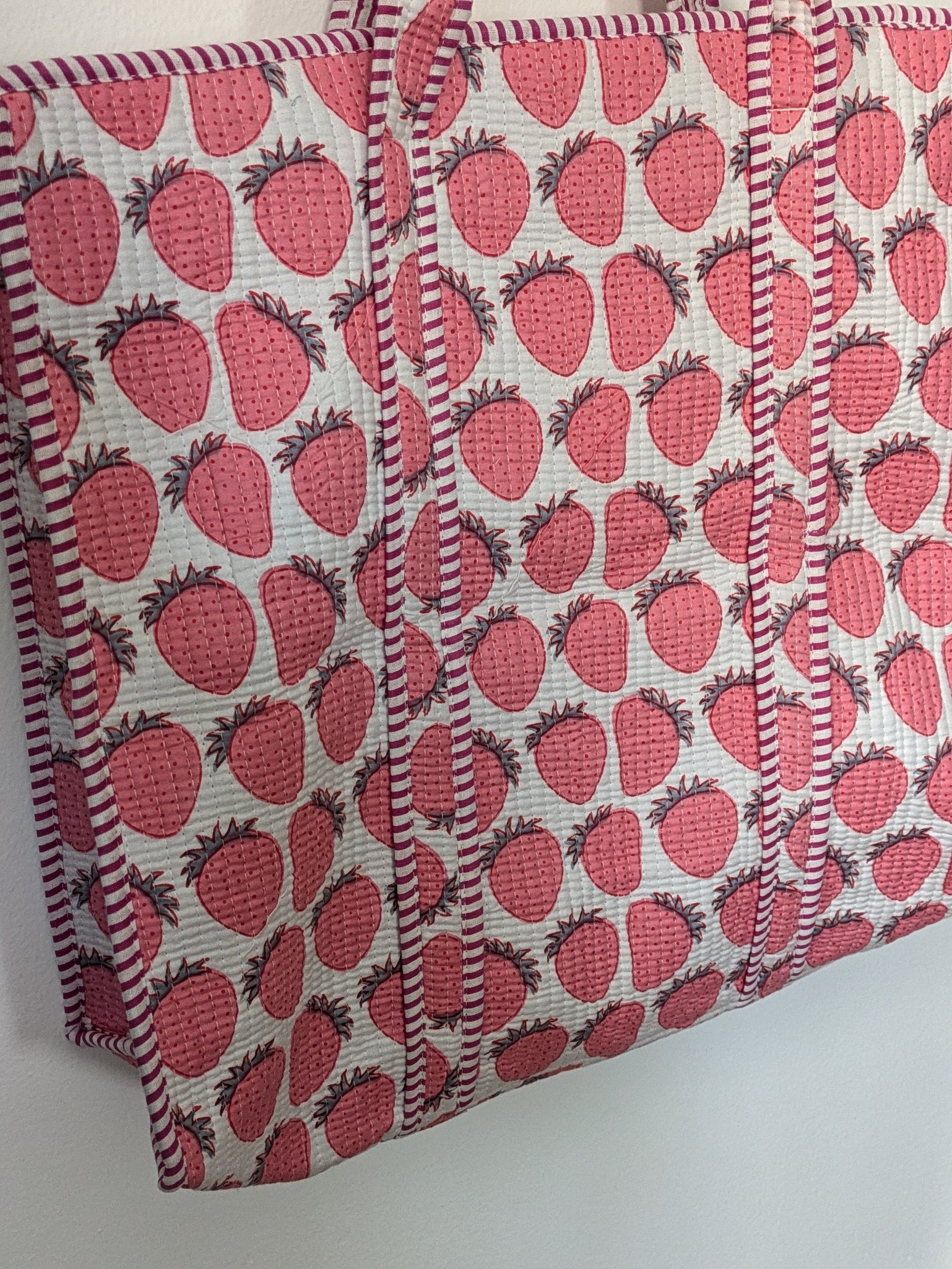 Quilted Strawberry Block Print Tote
