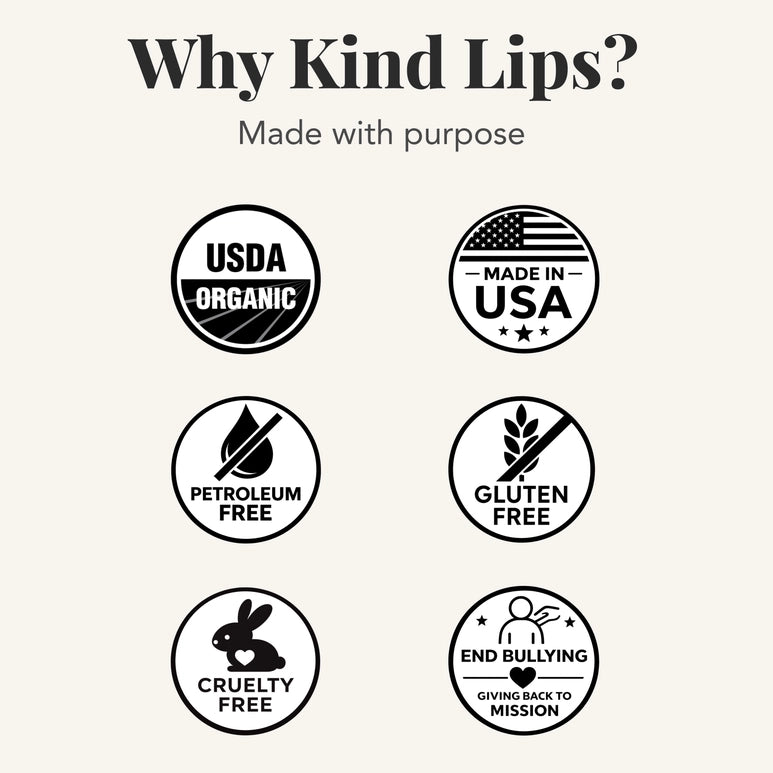 Kind Lips has NO petroleum, NO fillers, NO soy, NO chemicals, NO GMOs and is non-toxic.