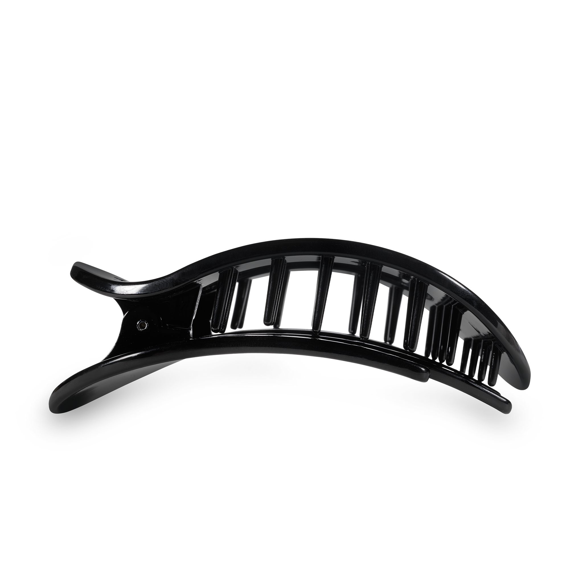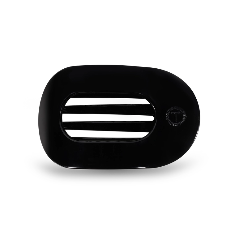 Lay flat and relax with the new TELETIES Jet Black Large Flat Round Hair Clip in Black. This hair clip is designed to allow you to lay back flat, do yoga, or sit comfortably in a seat with a headrest, and it is made with the same material that is nearly unbreakable. Lay down flat with comfort Bendable teeth for a secure yet gentle hold Lightweight, durable, and hair-friendly Perfect for all-day wear—from sunup to sundown The large size is great for thick hair. Sold as an individual unit.