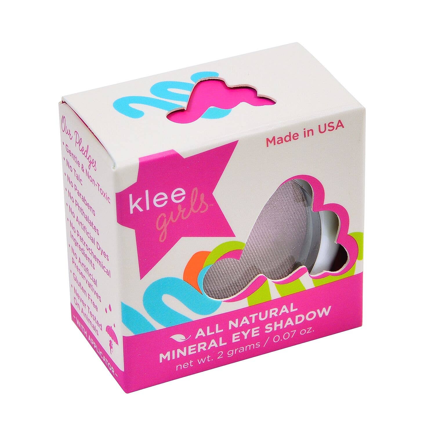 Klee Girls All Natural Mineral Eyeshadow is formulated with NO talc, NO parabens, NO synthetic dyes and NO petrochemical binders.