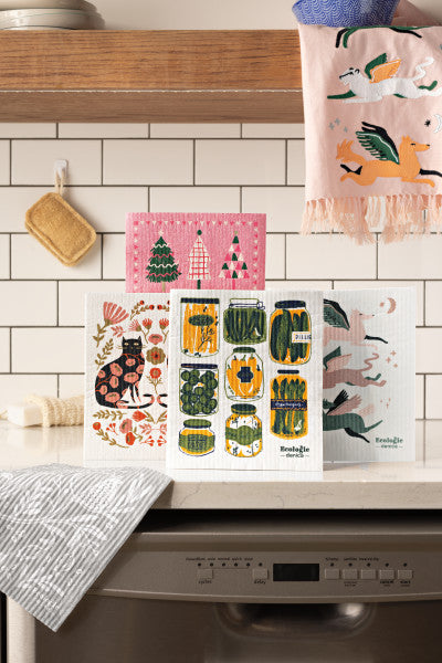 Made from cotton and plant-based cellulose fibers, these 100% natural and compostable cloths are an established must-have in Scandinavia. They offer a sustainable alternative to sponges, dishcloths and paper towels and become soft and pliable when wet for easy cleanup.