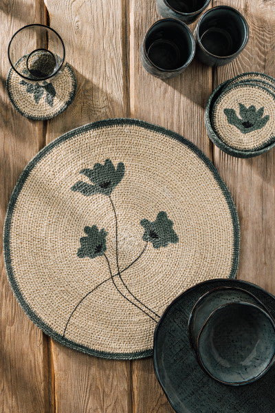 Protect your surfaces in style with the Aria Seagrass Coasters. Handwoven from natural seagrass with a soft botanical motif, this set of 4 adds texture and warmth to any table.