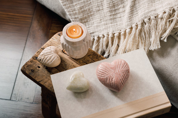 Ideal as paperweights, bowl fillers, or a gentle presence on nightstands, bookshelves, or desks, these hearts are simple reminders that beauty resides in life’s small, thoughtful touches. Each one is hand-carved from natural stone, so no two hearts are the same.