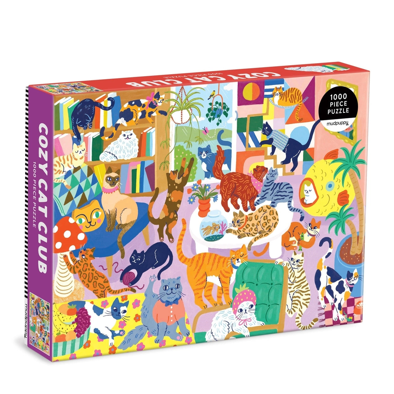 Settle in for hours of cozy puzzle fun with this delightful 1000-piece family puzzle featuring Sarah Walsh's whimsical cat club illustration. Perfect for puzzle nights, rainy days, or quality time together, this charming scene invites everyone to gather around and piece together the purr-fect picture. With vibrant colors and adorable feline characters, it's a feel-good challenge that brings smiles to faces of all ages. Frame it when finished—it's too cute not to display!