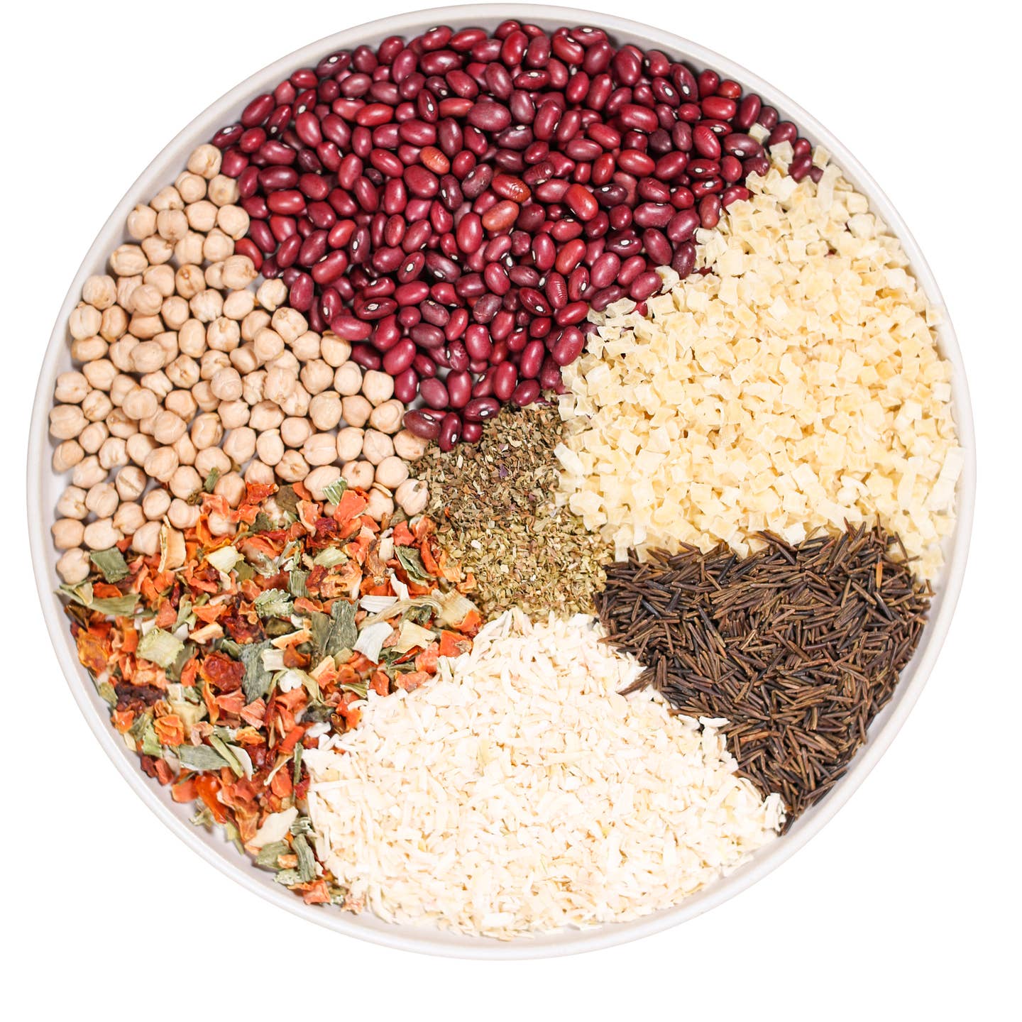 Tuscan Minestrone with a delicious Minnesota twist: wild rice instead of pasta. Everything else is still there: red beans, garbanzo beans, onions, celery, carrots, herbs & spices.
