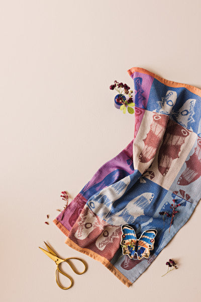 Delicate yet bold, the Aurora Trinket Dish brings a burst of color and artistry to everyday moments. Shaped like a butterfly and adorned with painterly blues, warm orange, blush pink, and soft neutrals, this small stoneware dish is both functional and decorative.