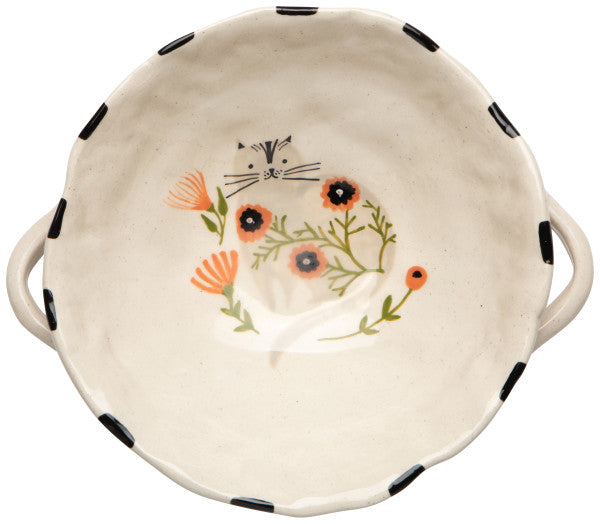 Charming and full of personality, the Catbloom Footed Bowl brings a touch of whimsy to everyday dining and display. Crafted from stoneware and finished with a soft, speckled glaze, this bowl features a sweet illustrated cat peeking out from a scattering of blooming florals—equal parts cozy and delightful.