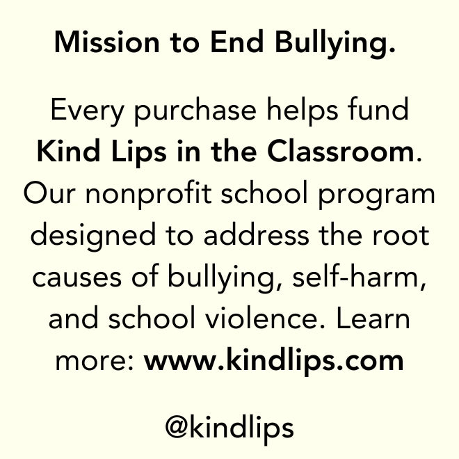 With every product purchased, Kind Lips donates 20% to one of its thoughtful partners like anti-bullying organizations and others who are hopelessly, eagerly, fearlessly devoted to promoting this kindness thing, too (PACERS's National Bullying Prevention Center/Youth Frontiers).