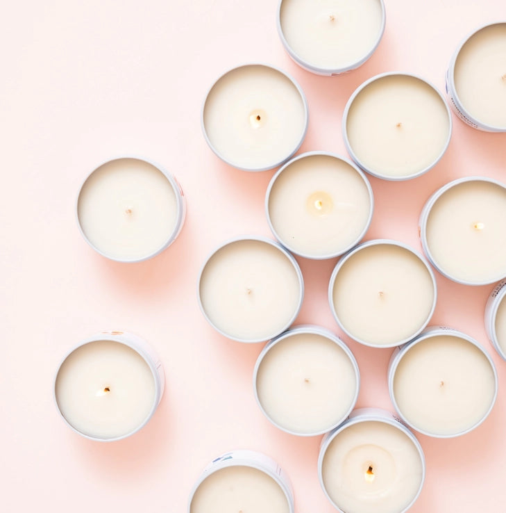 Made with our unique blend of coconut-soy wax, our phthalate-/paraben-free premium perfume oils + our favorite natural, flat-braided cotton wicks, handpoured into a 8oz white metal tin with gold interior. Great for scenting smaller rooms + bathrooms. Our candle tins are hand-poured into our white metal tins, making them great for gifts, too! Approximate burn time: 32+ hours.