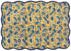 Fan Flower Block Print & Quilted Kantha Placemat (Reversible)