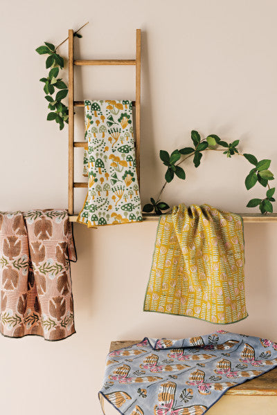 Block-printed by hand with Danica's custom designs, our updated cotton dishtowels offer enhanced quality, function, and softness. Artisanal craftsmanship meets everyday utility, bringing beauty and improved performance to any kitchen.