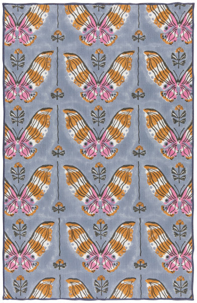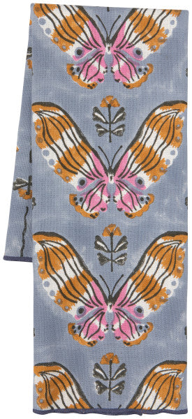 Bring color, craftsmanship, and everyday beauty to your kitchen with the Aurora Block Print Dishtowel. Hand block-printed by skilled artisans, this cotton kitchen towel features a striking butterfly motif in warm amber, blush pink, and soft gray—each layer printed by hand using time-honored techniques.