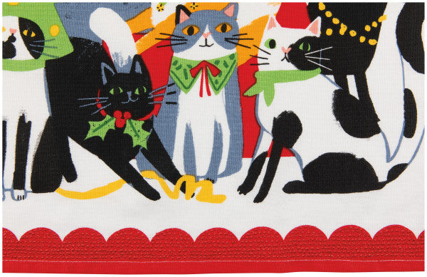 A medley of meows, a harmony of howls; a kitty collaboration greets the season with festive feline flair.