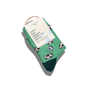 Kids Socks That Support Youth Sports (Green Soccer Balls)
