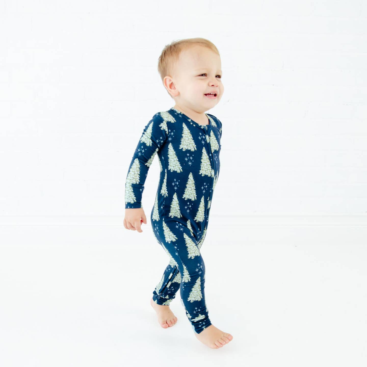 This gorgeous Holiday Collection features a deep blue background with snow covered trees! Whether you prefer a footie or romper, this all-in-one convertible piece does it all! Made with two way zippers for easy diaper changes, this adorable romper features fold over cuffs on the ankle which converts this romper to a footie as desired.