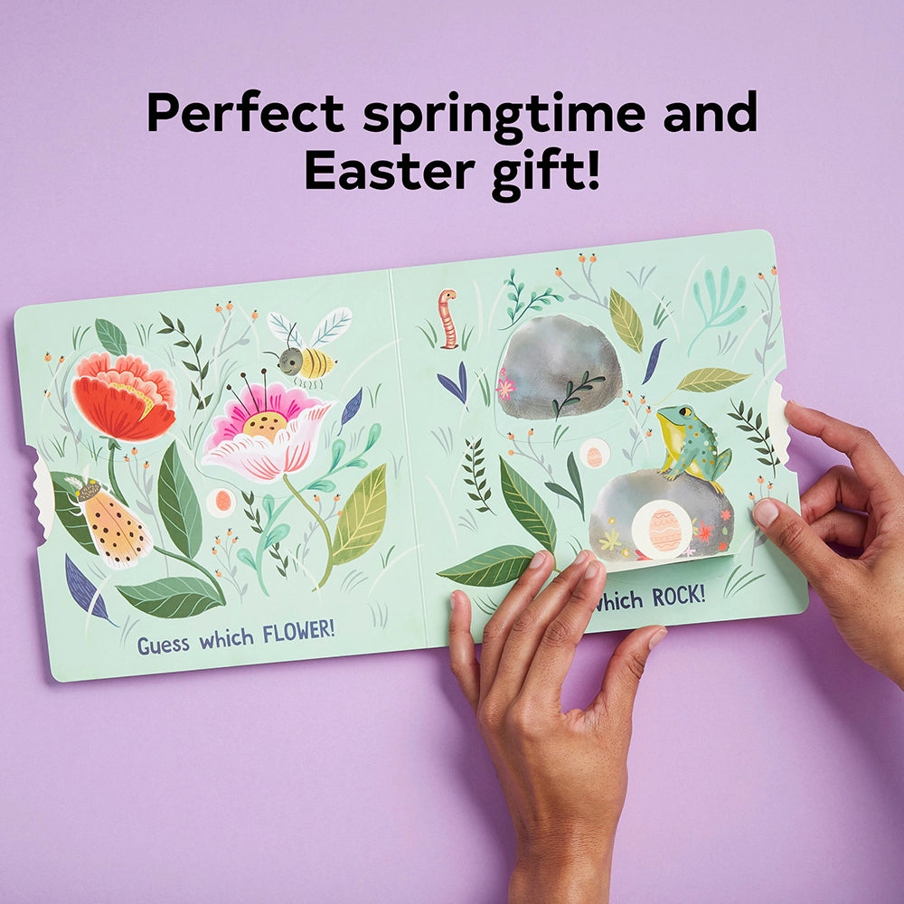 The Easter egg hunt is on! With this bright and colorful hands-on toddler board book, the Easter tradition of the egg hunt comes to life in a playful, interactive way. Young children will turn the wheel to hide brightly colored Easter eggs inside baskets, under flowers, behind rocks, and even in hands. After the egg is hidden, it's time to guess where it is! Lift the flap for the reveal in this game-in-a-book, then play again (and again) for hours of eggs-citing fun!