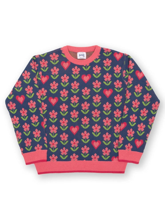 We absolutely adore this uplifting new knit and know it will become a favorite layer for the season and beyond. Featuring a gorgeous flower and heart jacquard design that we've carefully designed with love here at Kite HQ.