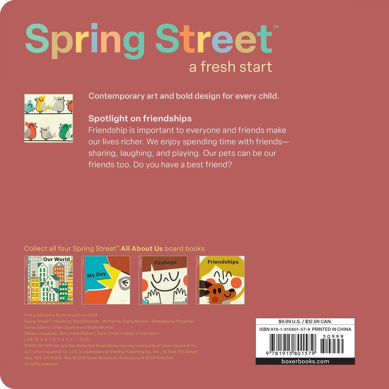 Beautifully produced, with contemporary artwork, this board book explores the idea of friendships and what they involve, from playing to sharing.
