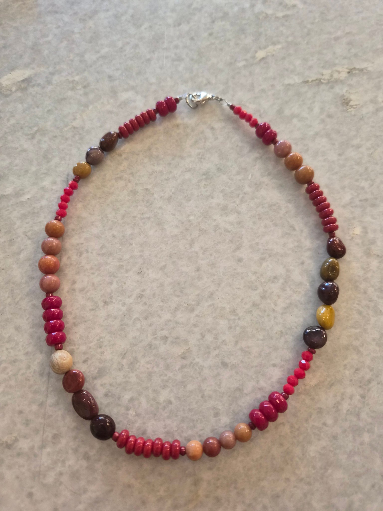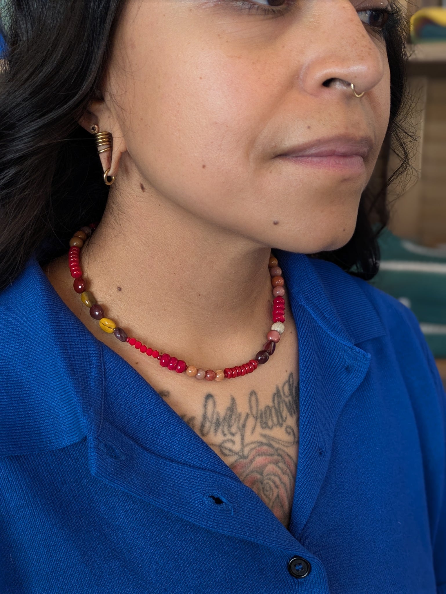 Add a touch of color and craftsmanship to your look with these handmade natural stone necklaces, created by local Minneapolis artist Sada. Each piece is one-of-a-kind, featuring a beautiful mix of stones such as chalcedony, jasper, and agate in warm, earthy, and vibrant tones. Finished with a sterling silver clasp, these necklaces combine natural beauty with artisan detail — perfect for layering or wearing solo.