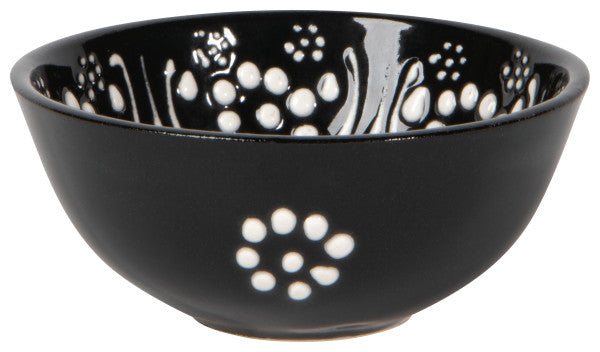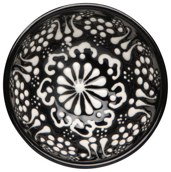 Bold, graphic, and beautifully made, the Evani Black Turkish Bowl is a striking addition to your table or shelves. Hand-painted by skilled artisans in Turkey, this bowl features an intricate white floral motif set against a deep black glaze—dramatic yet timeless.