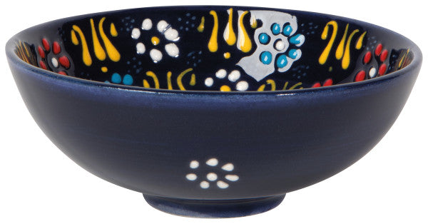 Bold, graphic, and beautifully made, the Evani AzureTurkish Bowl is a striking addition to your table or shelves. Hand-painted by skilled artisans in Turkey, this bowl features an intricate floral motifs set against a deep blue glaze—dramatic yet timeless.