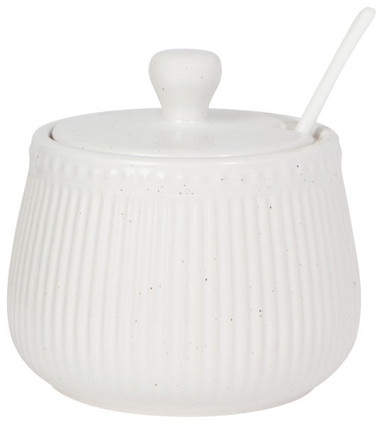 White with specklesStoneware potDishwasher safe. Hand wash recommended. 4" x 4.5"