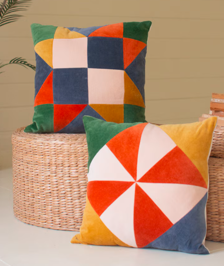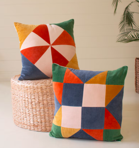 Bring playful color and plush texture to any space with these velvet patchwork pillows, beautifully handmade in India. Each 18x18 cushion showcases a one-of-a-kind mix of soft velvet in bright, joyful tones that instantly elevate a sofa, kid's room, or sunroom.