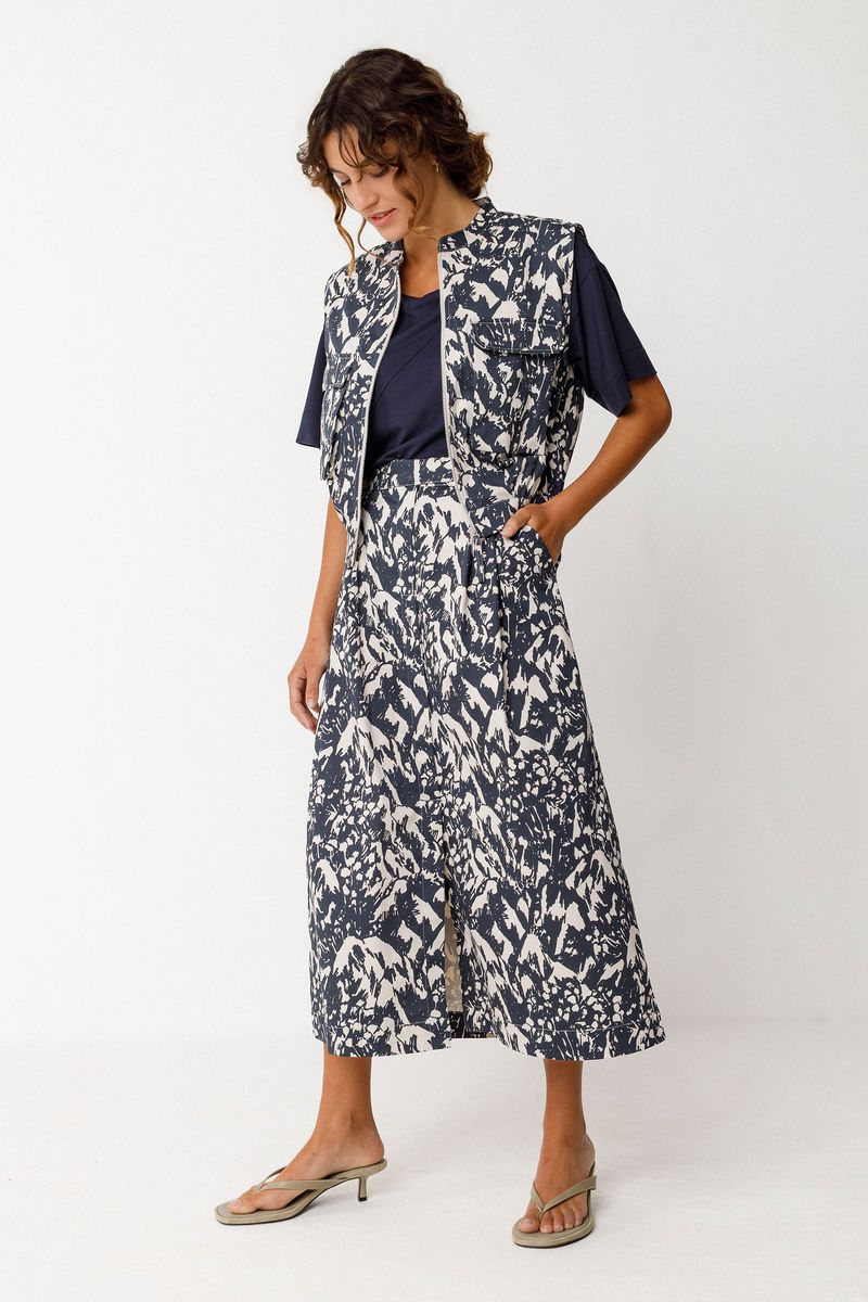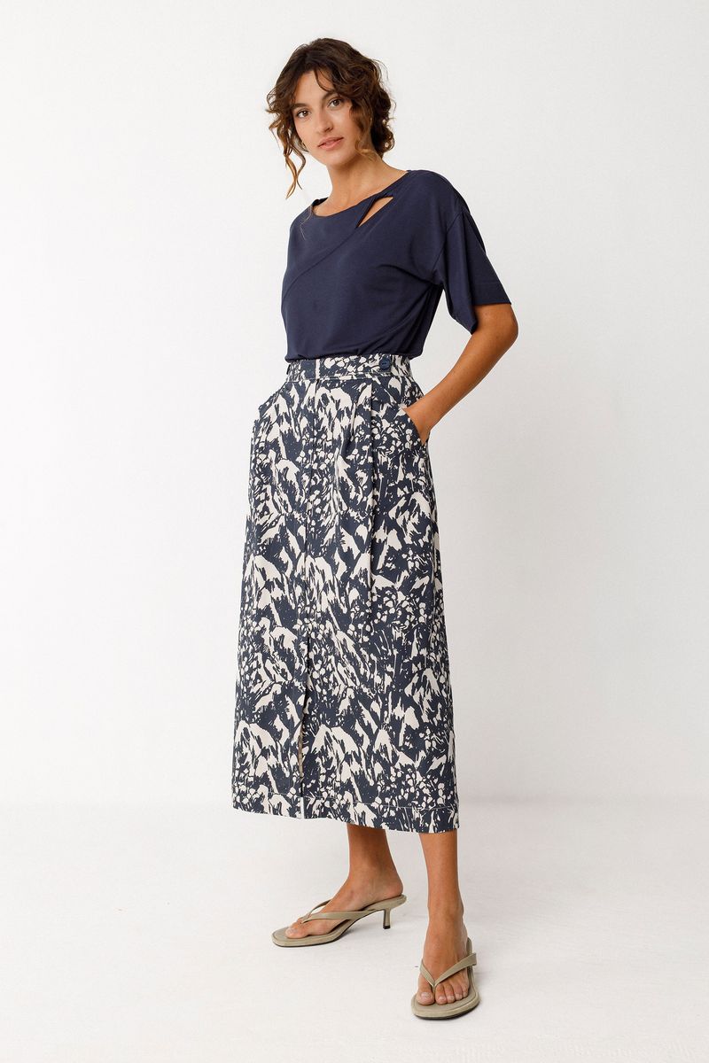 Artful yet effortless, the Ioana Skirt is a modern statement piece crafted from organic cotton with just a touch of stretch for comfort. The navy and ivory abstract print feels bold but timeless — an easy way to elevate everyday dressing.