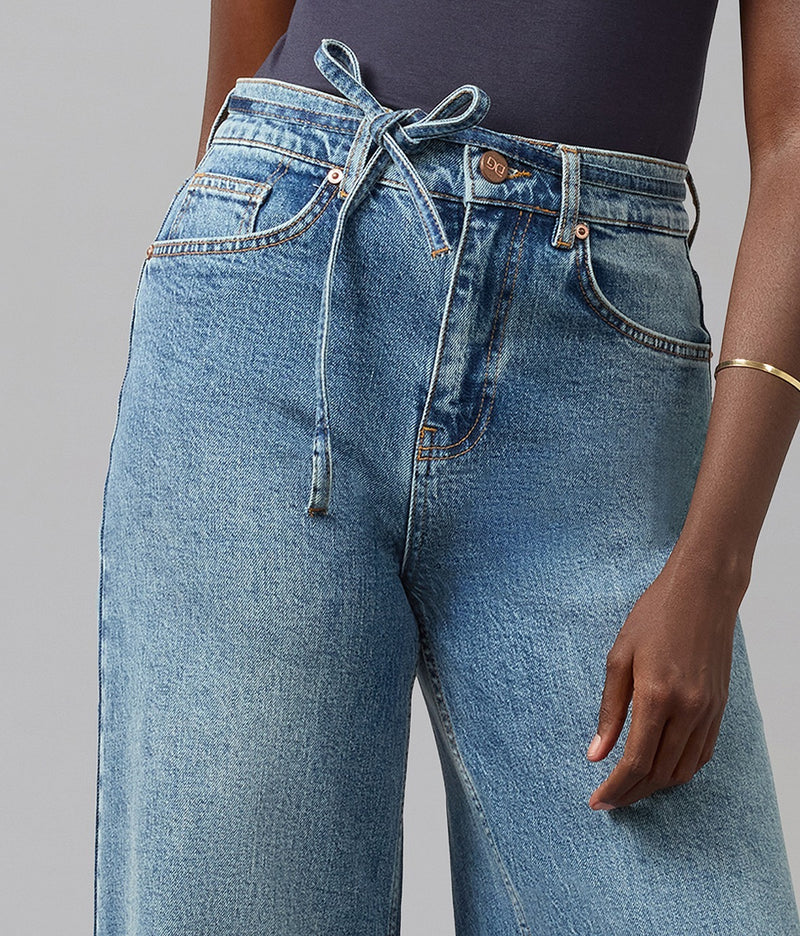 Make a statement with Milan. This ultra high-rise jean features an exaggerated wide leg and dramatic drape, crafted for movement and modern edge. Featured this season with a delicate, removable denim belt for added versatility and styling.