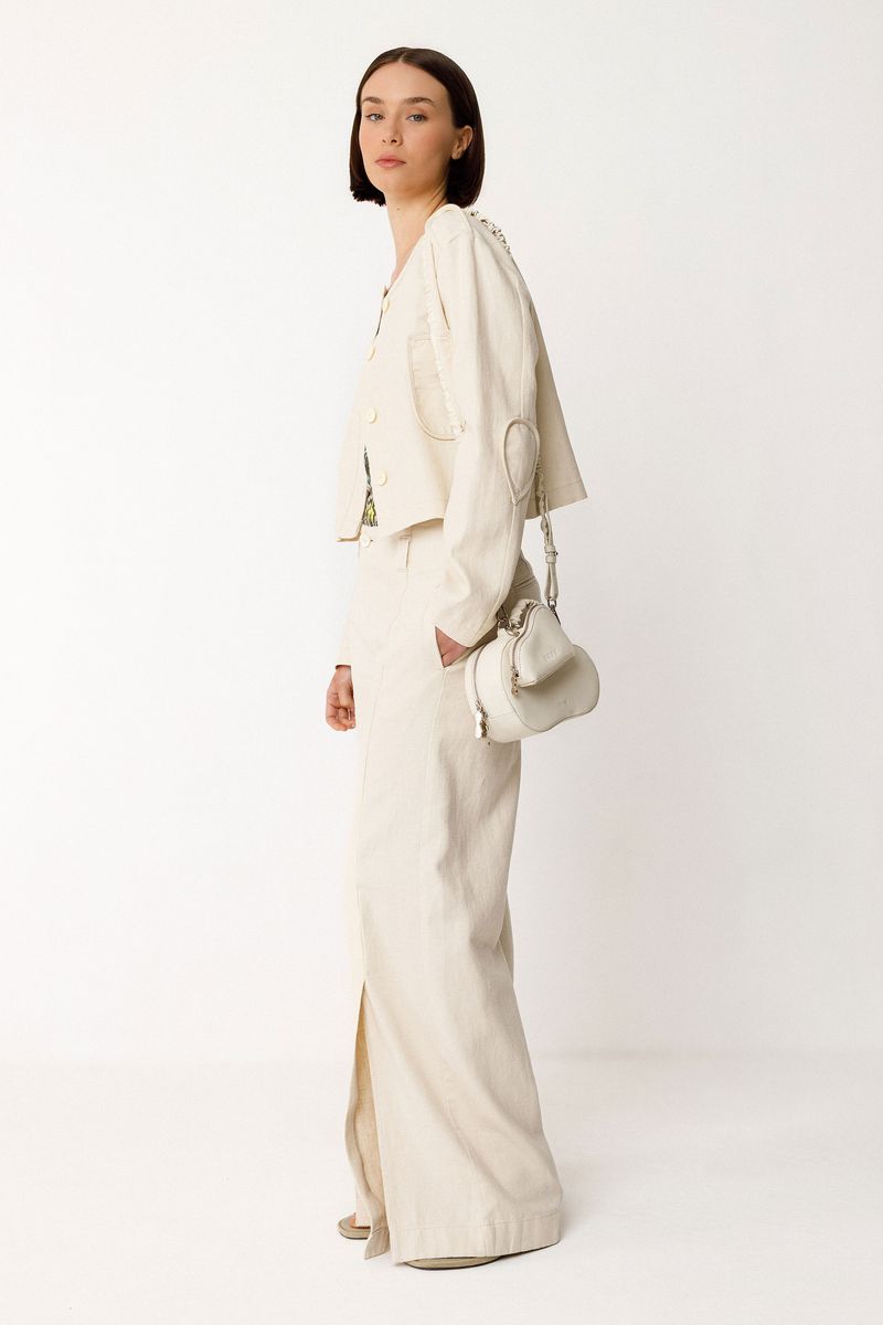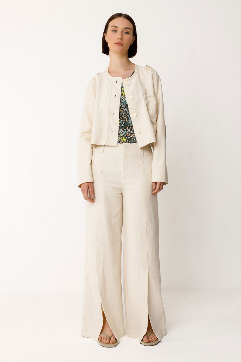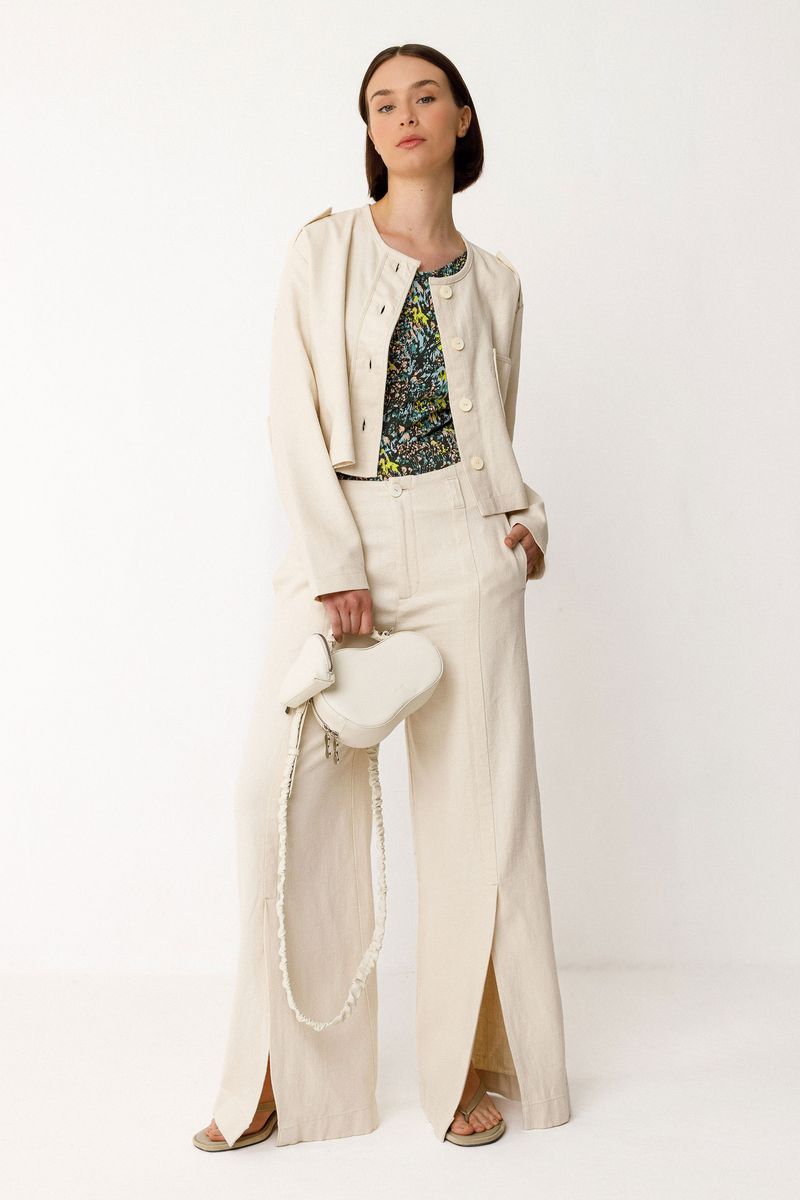 High-waisted palazzo trousers in organic linen-cotton blend.