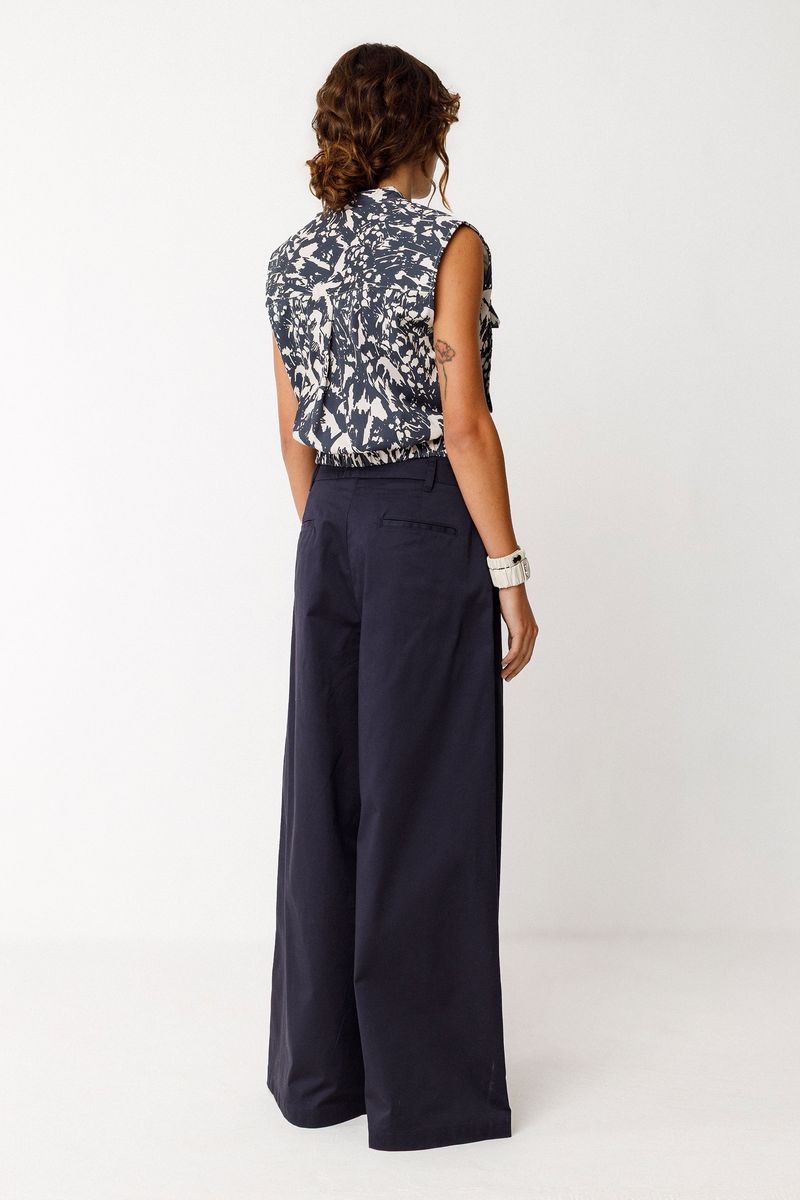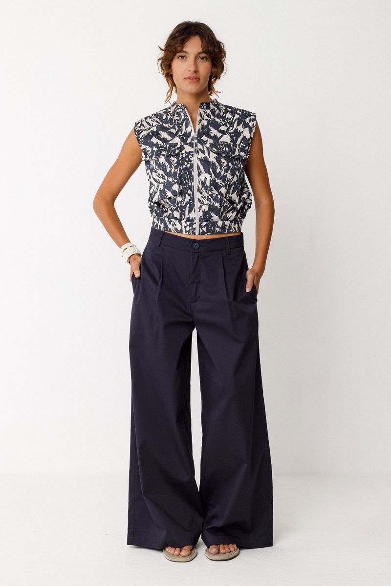 Bea Organic Cotton Sleeveless Top – Navy & White Patterned Crop Vest