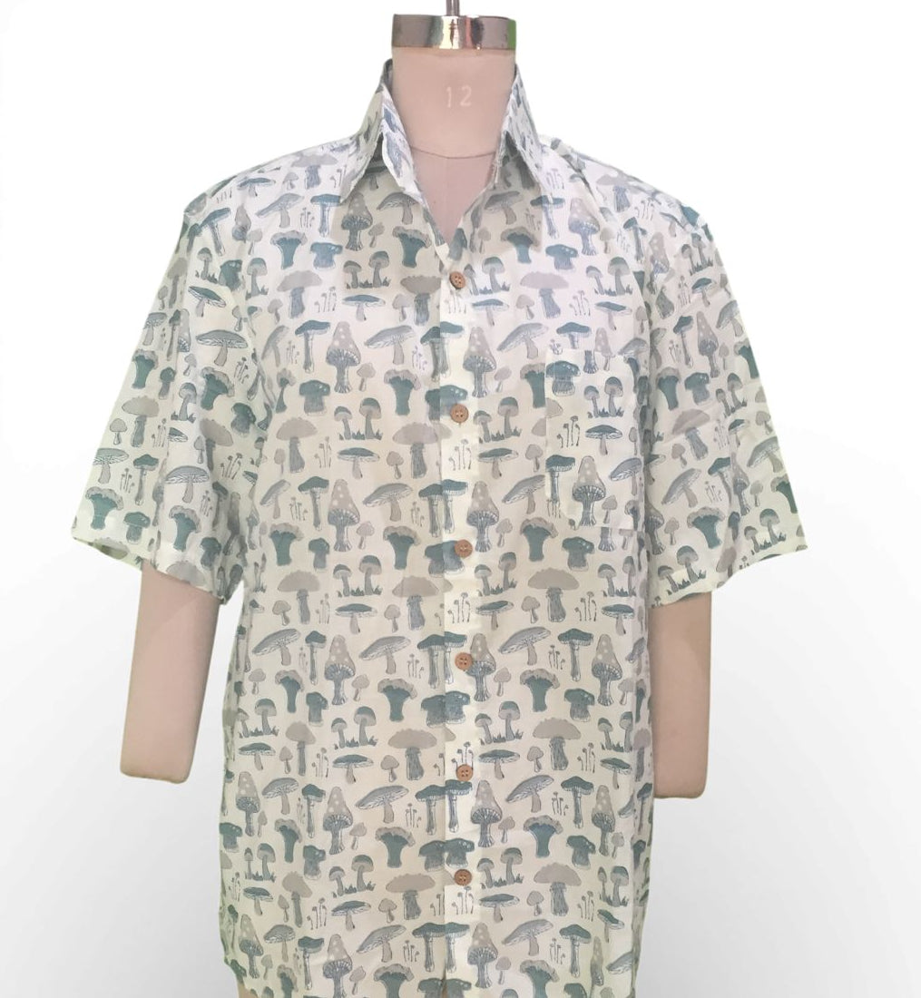 Bring artisan craftsmanship to your menswear collection with our Men’s Woodland Wonder Button Down Shirt in an earthy mushroom print. This shirt is crafted from 100% breathable cotton and features a refined, hand-illustrated mushroom print in soft, earthy tones. Subtle yet distinctive, this piece brings a thoughtful, design-forward touch to everyday dressing.