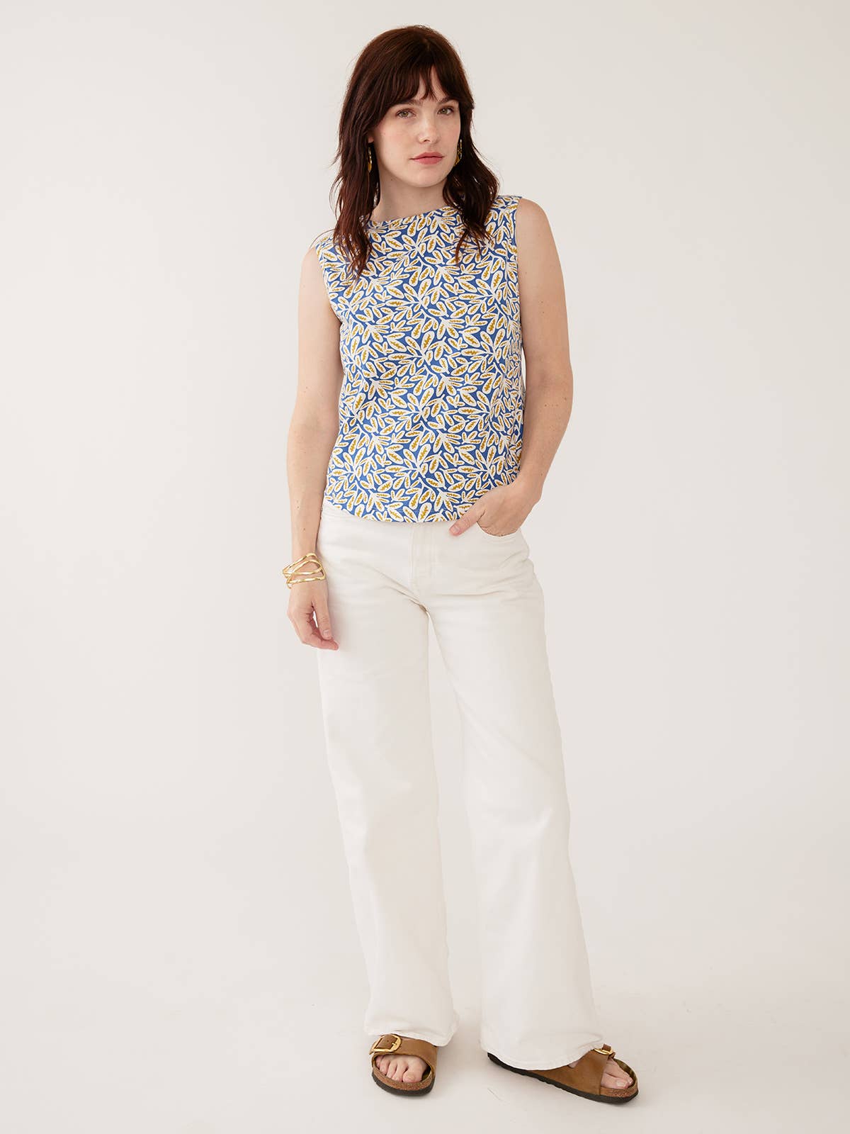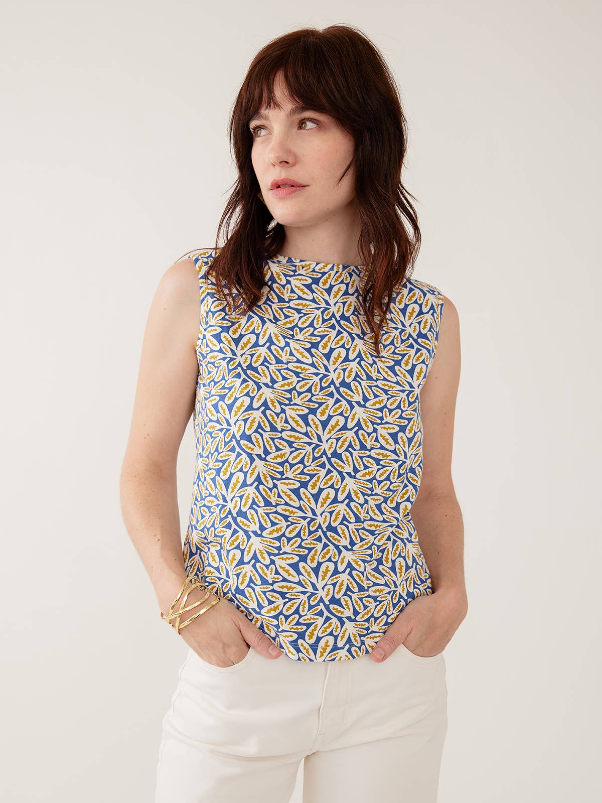Upgrade your essentials with the Millie Muscle Tee by Mata Traders, a piece that celebrates the intersection of art and impact. Featuring the vibrant "Fern Beats Blue" print—an exclusive artist collaboration—this tee offers a modern, sleeveless silhouette with a sophisticated crew neck. Crafted from a premium 190gsm organic cotton jersey, it provides a structured yet soft feel that holds its shape wash after wash.
