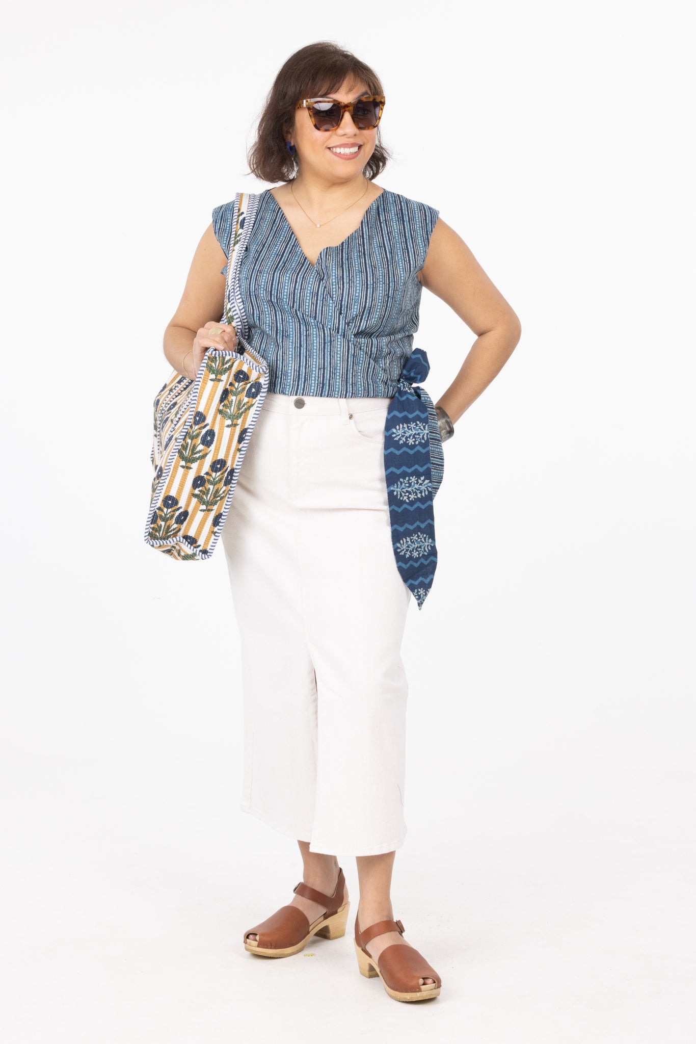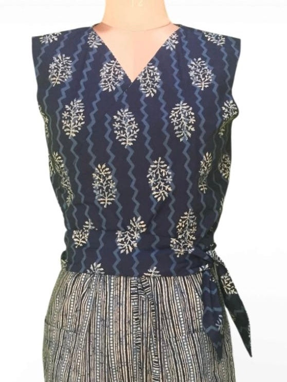 Versatile and wearable, this reversible 100% cotton wrap top gives you two distinct looks in one. Simply flip it inside out for a fresh color and print option. Crafted from breathable, lightweight cotton, it features a flattering wrap silhouette that ties at the waist for an adjustable, custom fit.