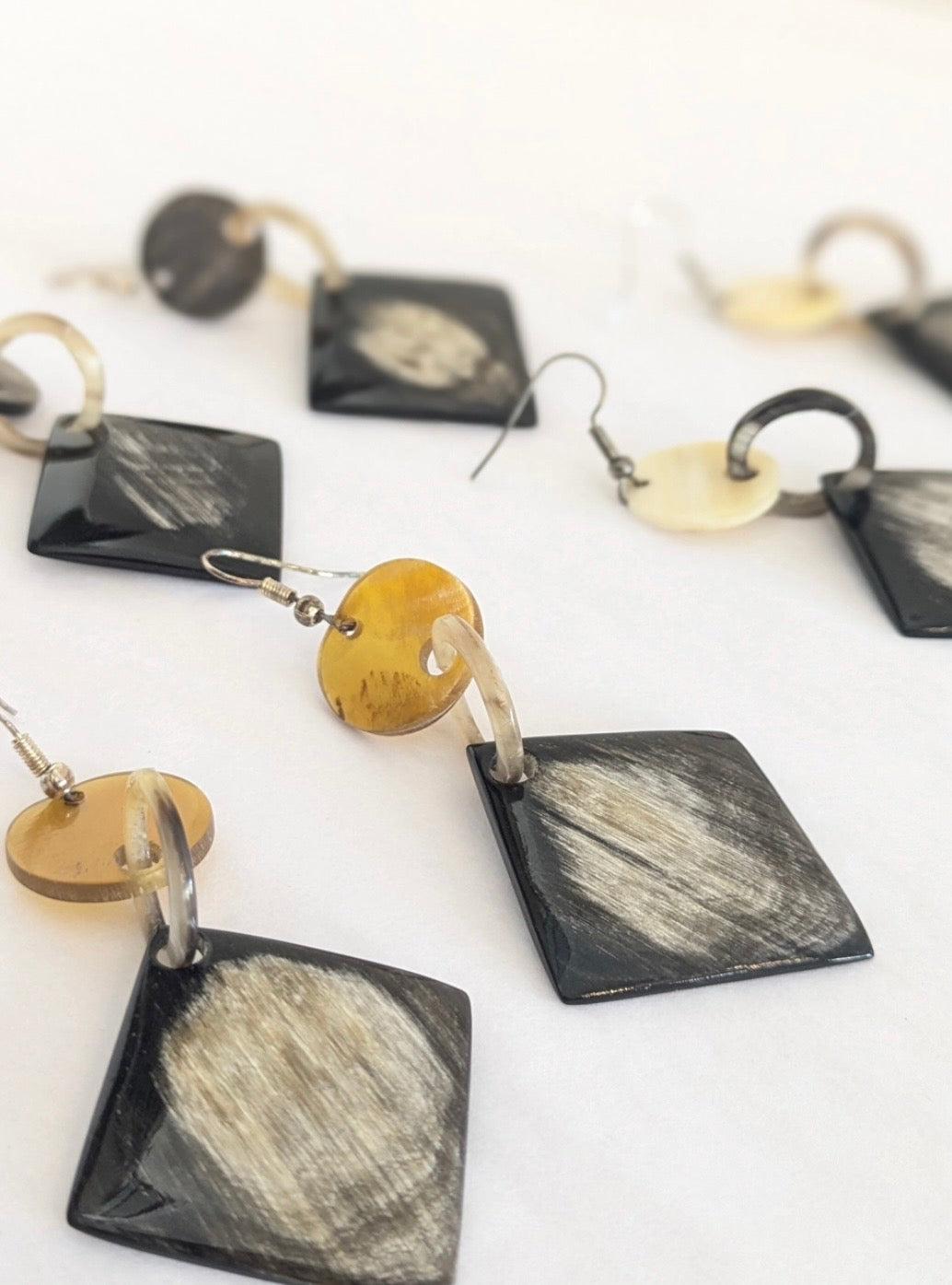 Available in three variations — Light (off-white), Honey (golden caramel), and Dark (deep horn) — each pair highlights the unique tones and patterns of natural horn. No two are ever alike, making every piece one-of-a-kind.