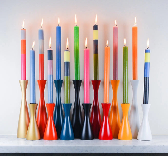 An elegant, simple turned and painted wooden candleholder to set the table in style.