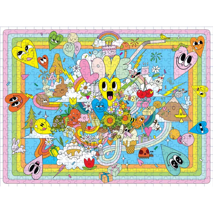 Love comes in many shapes, sizes, and colors in this pop-infused, sweet-as-pie 500-piece jigsaw puzzle. Skip across the rainbows and dive into the hours of summery solving fun that await!